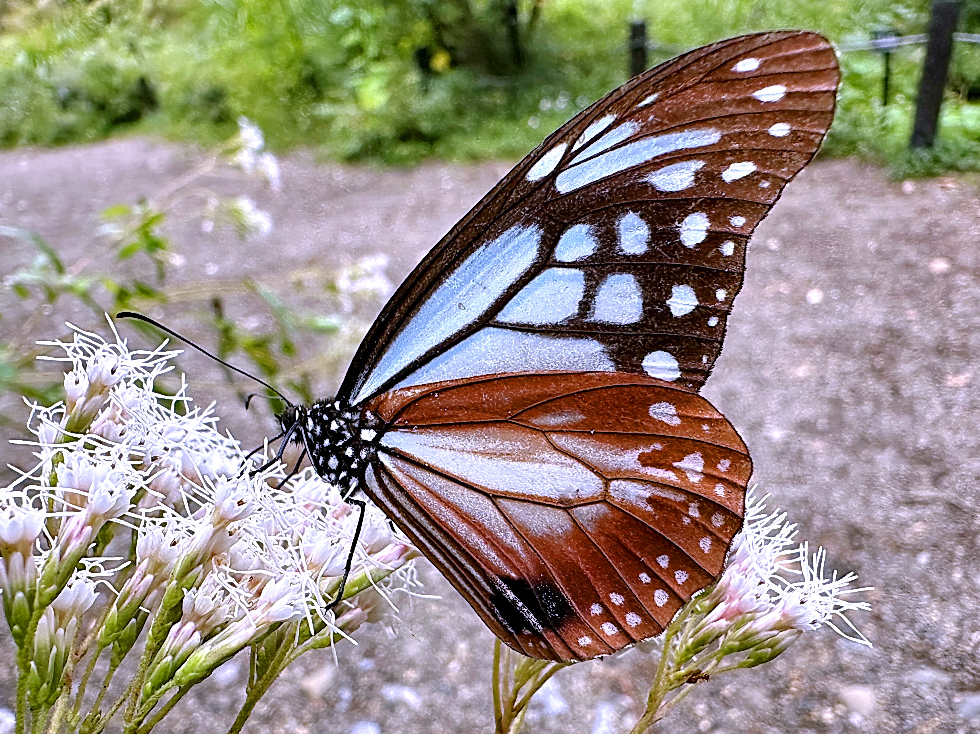 熱帯の蝶に属するアサギマダラは暑さが苦手、見られるのも朝か夕方です。
