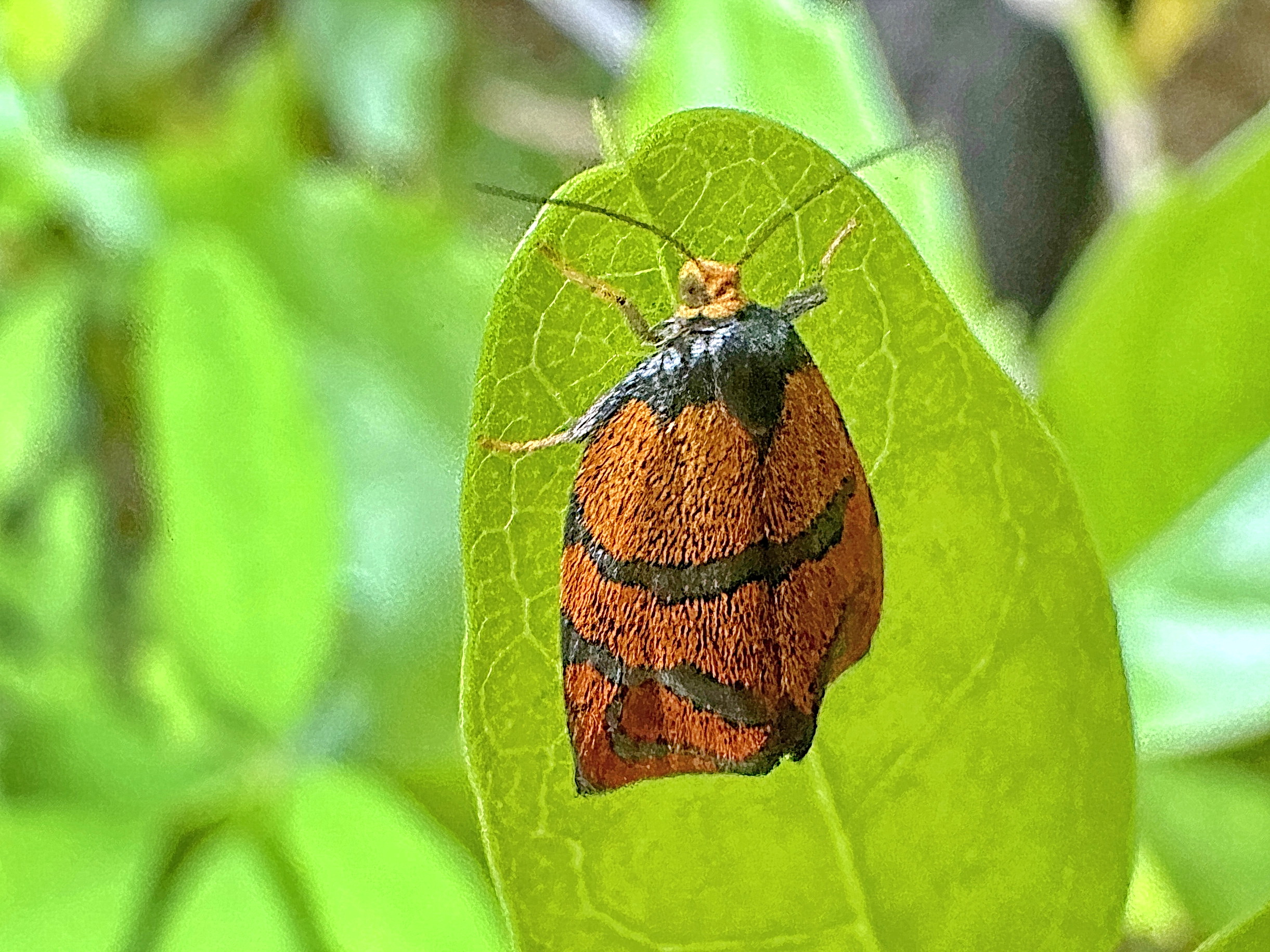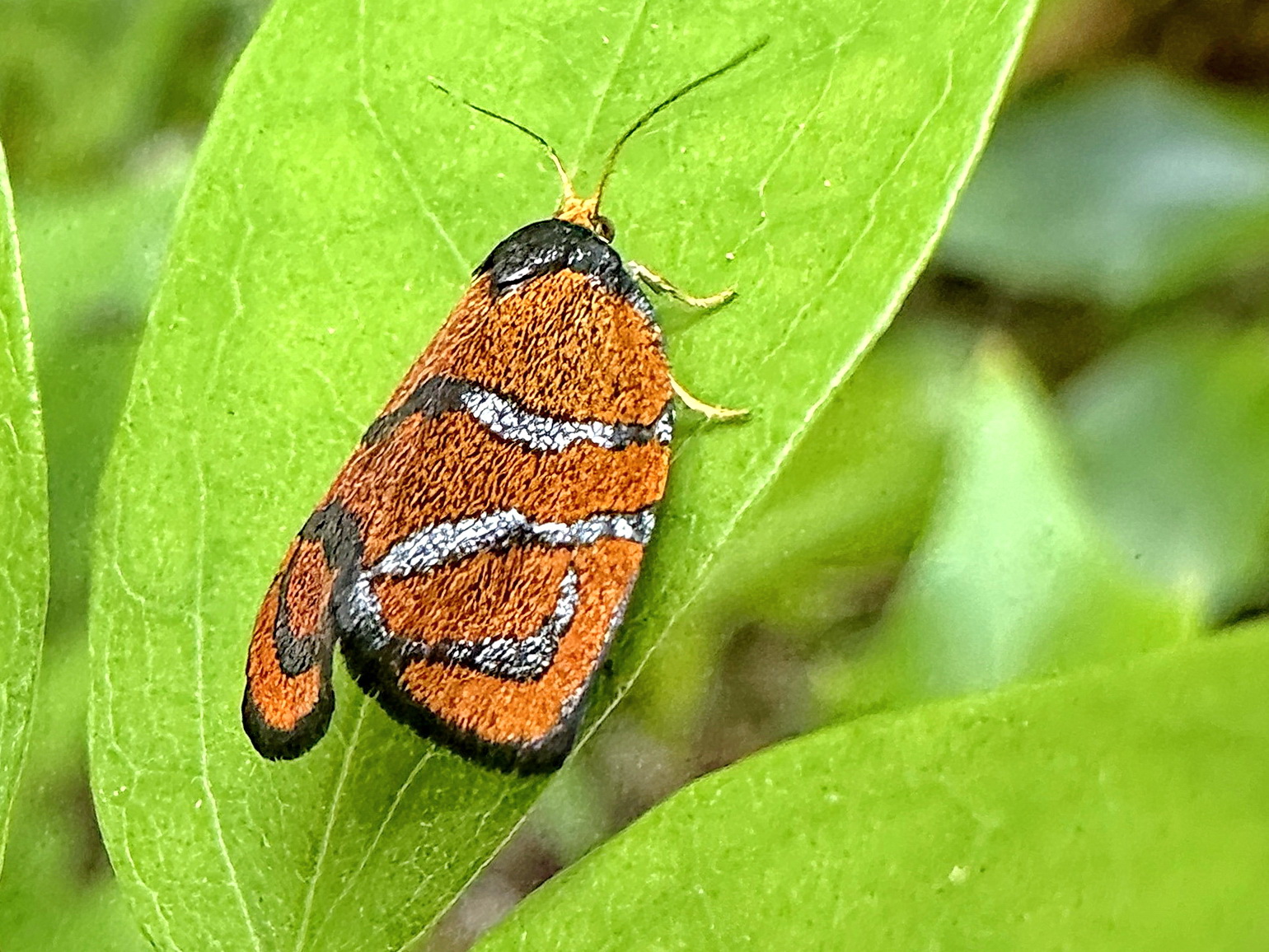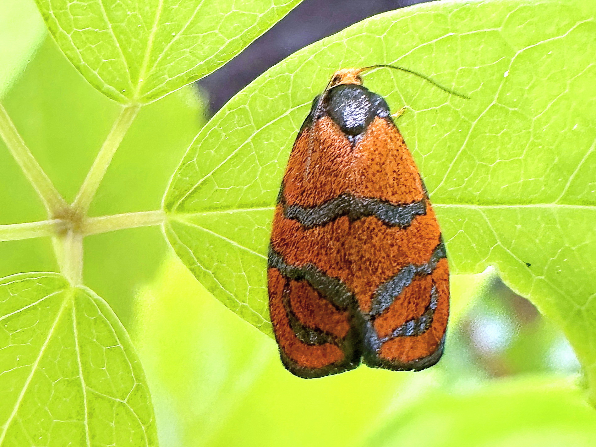 鮮やかな美しい蛾ですが、リンゴの害虫として知られているそうです。