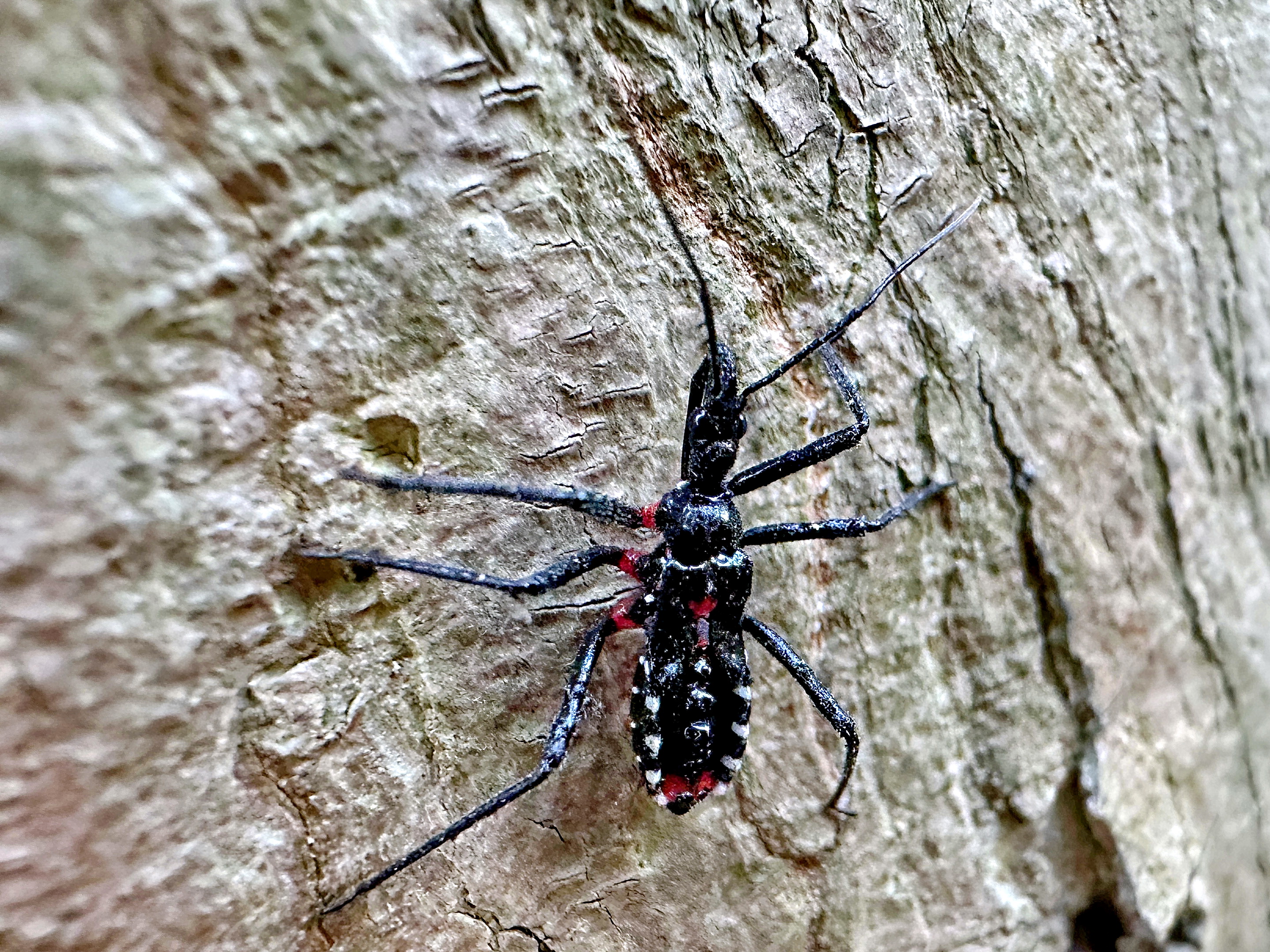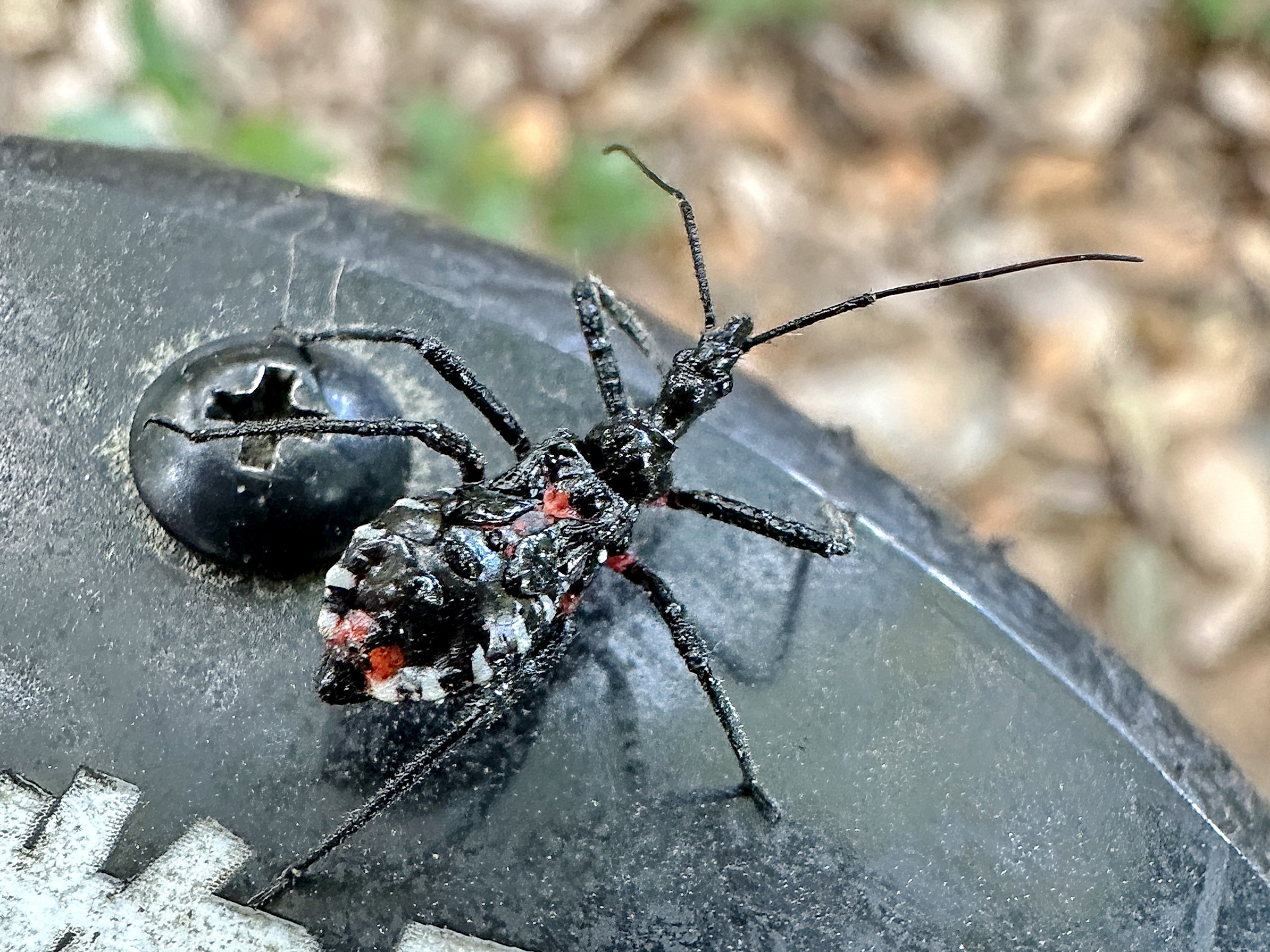 羽化した直後の成虫は鮮やかな赤色で、時間が経つと黒色に。真っ赤なヨコヅナサシガメに会ってみたいものです。